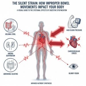In the wellness space, we often focus on “gut health” as a matter of microbiome or bloating. However, the physiological reality is much more interconnected. Improper bowel movements—characterized by chronic “straining” or holding—trigger a cascade of events known as The Silent Strain.